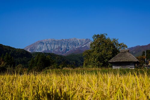 大山の定番スポットのひとつ。御机(みずくえ)の茅葺小屋です。 茅葺屋根と大山の組み合わせがなんとも言えない風情を感じさせてくれますが、季節によて全く違った風景を見せてくれます。 今回は、手前の田んぼが稲刈り前だったこともあり、秋らしい組み合…